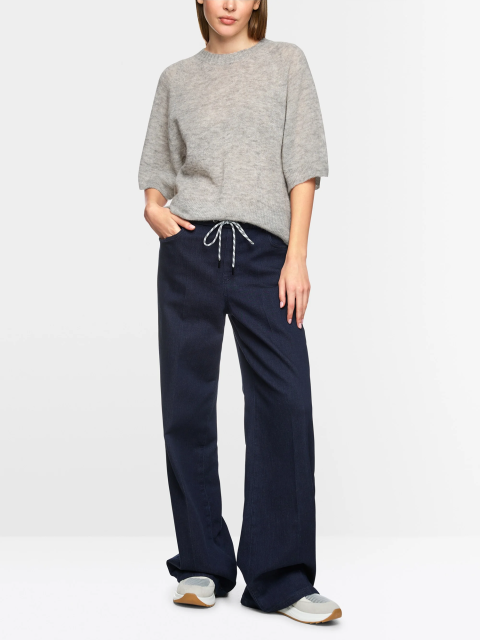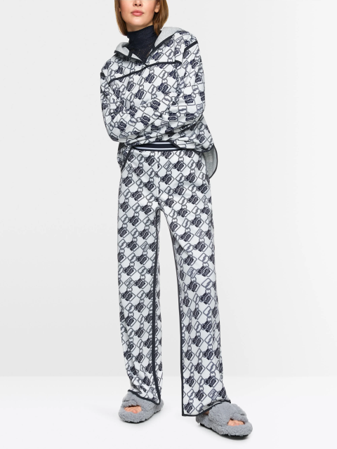 Образ отсылает к Лазурному берегу. Традиционный для этой коллекции сине-белый принт, напоминающий картины французских художников ХХ века, украшает завязанную блузку и длинные брюки.