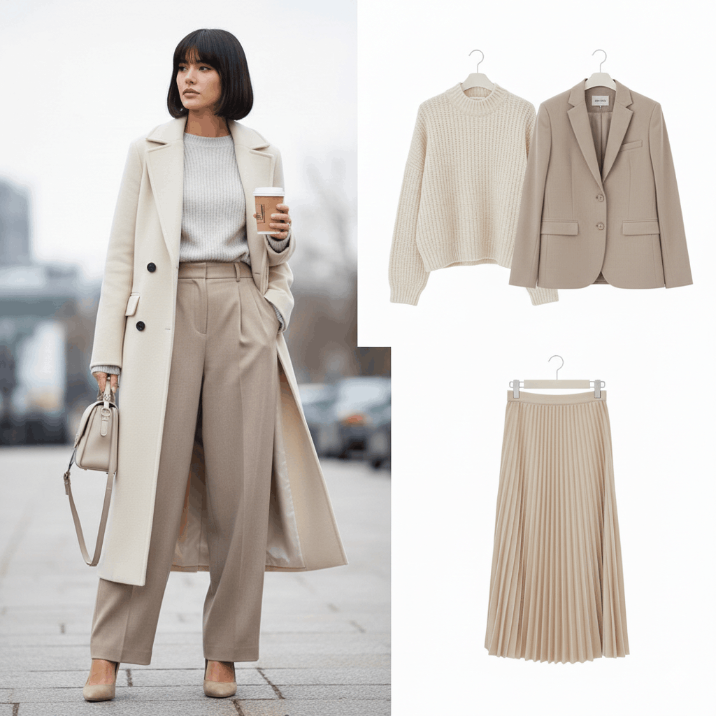 Молочный, Cloud Dancer и мягкие кремовые тона вытесняют холодный белый. Они подчёркивают фактуру ткани и делают силуэт мягче.