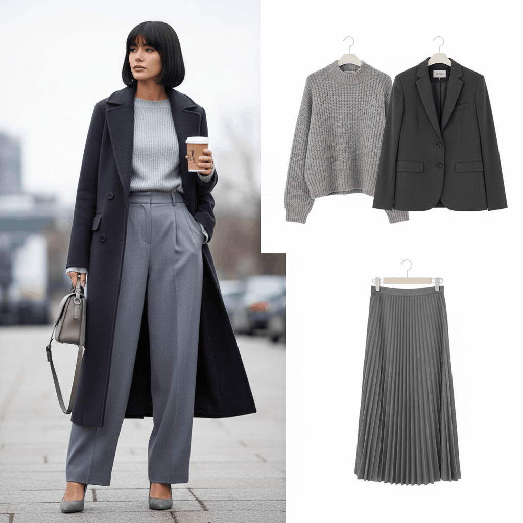 Графит создаёт ощущение архитектурной строгости и современности. Он сочетается с молочным, лиловым, красным и синим. Именно поэтому подиумные показы 2026 года делают ставку на серые оттенки как на новый главный нейтрал.