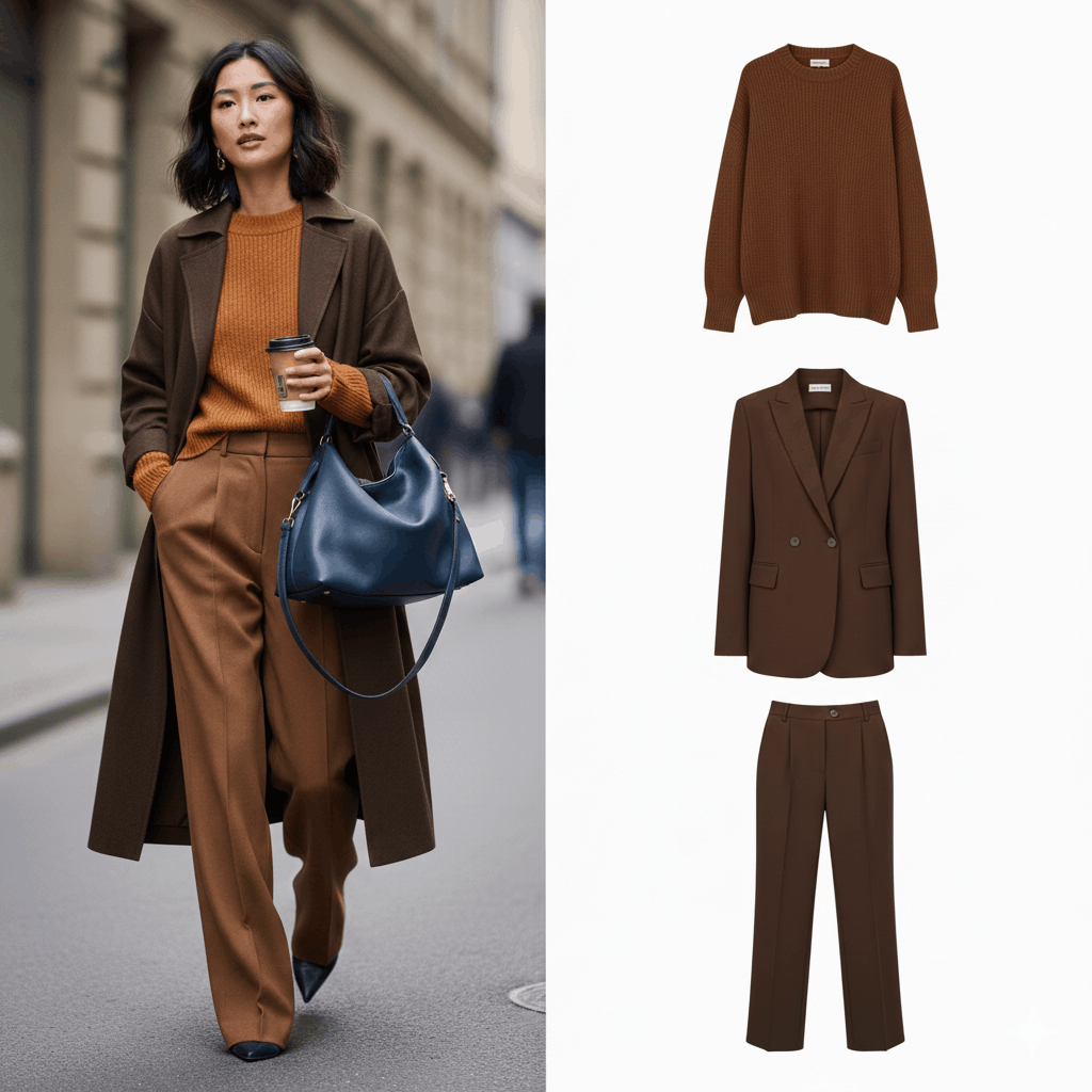 В одежде такие оттенки создают ощущение продуманности. Они гармонично сочетаются с молочным, бежевым, изумрудным и красным. В деловых и повседневных образах коричневый выглядит современно и дорого. Это один из ключевых трендов года, который активно поддерживают подиумные коллекции.