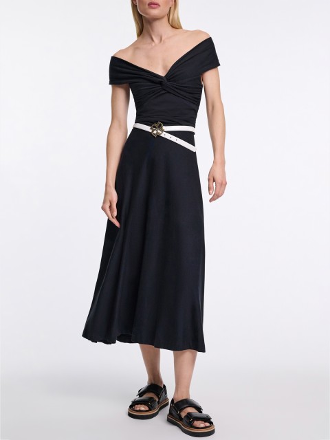 Без этой пары не обходится ни одна коллекция. Черный и белый — бессмертная классика, остающаяся вне времени. Черный стал незаменимым цветом в выборе платья еще со времен, когда Коко Шанель изобрела универсальный элемент женской капсулы — маленькое черное платье. А длинное черное платье — беспроигрышный вариант одежды, когда хочется создать сдержанный и элегантный образ. Добавляем фото платья от Toteme, исполненное в бохо-эстетике.