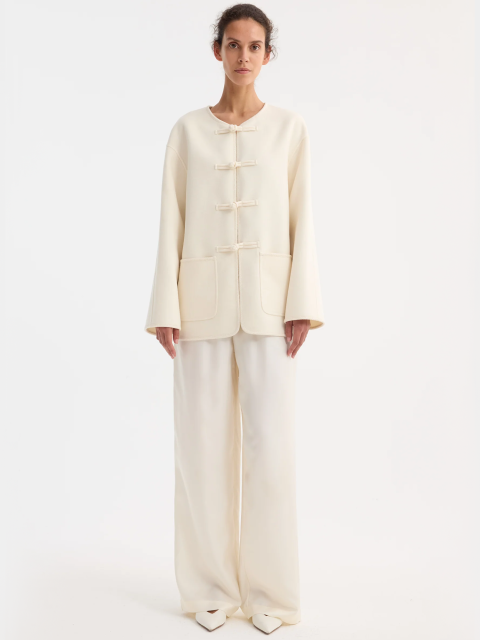 - Внимание к тканям. Бренд сотрудничает с производителями тканей из Италии, Франции и Японии, отбирая материалы по качеству, тактильности и архитектурному «поведению» в движении. Собственно, соучредительница имеет бэкграунд в текстильном дизайне, поэтому называет материал отправной точкой для всего процесса создания одежды.