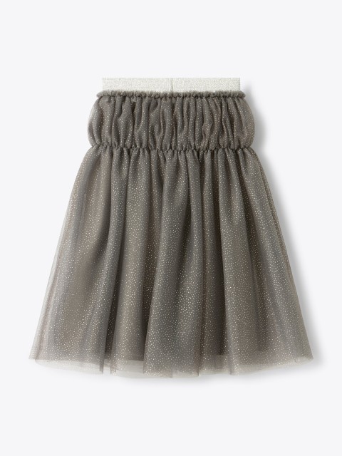Деликатная палитра обогащена оригинальными узорами и фактурами, которые придают каждому изделию глубину и характер. Среди ярких примеров: платья из шерстяной смеси с узором «елочка», украшения в виде пуговиц-драгоценностей, тюлевые платья и юбки с микроблестками, а также изделия из ткани Sensitive® Fabrics, украшенные блестящими элементами.