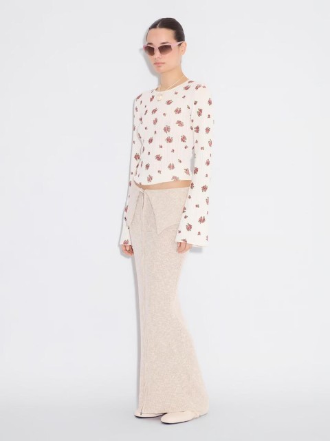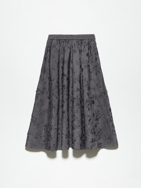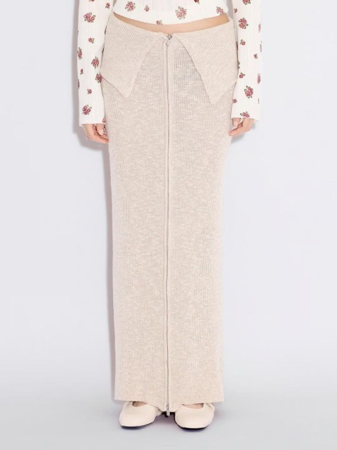 Максимальная длина и оттенок слоновой кости или холодного белого создают чистый силуэт. Такая юбка легко интегрируется в базовый гардероб и сочетается с классическими рубашками, льняными топами или минималистичными футболками.