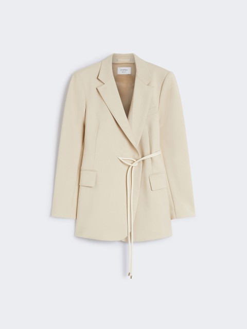 Противоположность предыдущему тренду — приталенный крой. Такой жакет подчеркивает фигуру, создает силуэт песочных часов. Приталенные модели представили на своих подиумах бренды Jacquemus и Acne Studios. В этом сезоне приталенный жакет модно носить на голое тело, акцентируя на декольте.