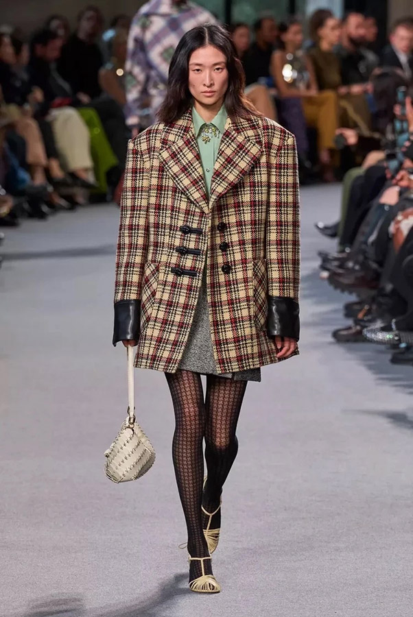 1. Глубокие природные оттенки: на подиумах появляются модели в темно-зеленом, оливковом, бордовом и коричневом нарядах. В частности, верхняя одежда брендов Loewe и Khaite, а также наряды и аксессуары от Gucci. На показе итальянского бренда Tod's тоже бордо в центре внимания.