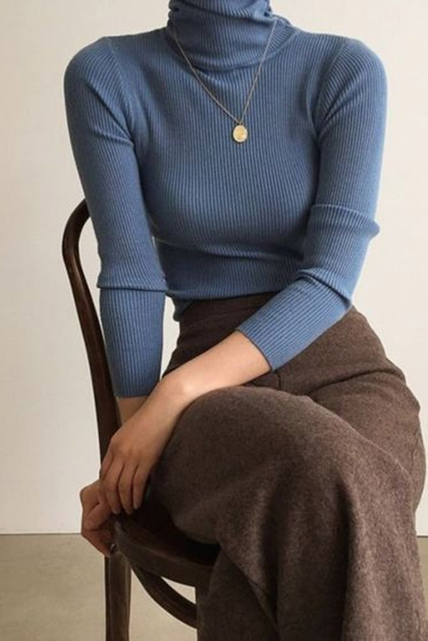 3. Свитера: высокая горловина и водолазки — это настоящий тренд 2024 года. Свитер водолазка с молнией на горловине вернулся в моду и появляется на многих показах. Жилет-водолазка стал частью делового зимнего стиля.