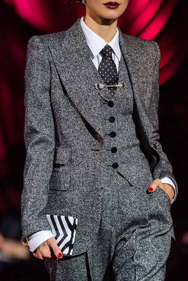 4. Твидовые костюмы. Трендовые костюмы в этом году изготавливаются из твида, фактурного материала, о котором говорилось выше. Твид — ваша идеальная ткань, если вы хотите зимой носить теплую и уютную классическую одежду.
