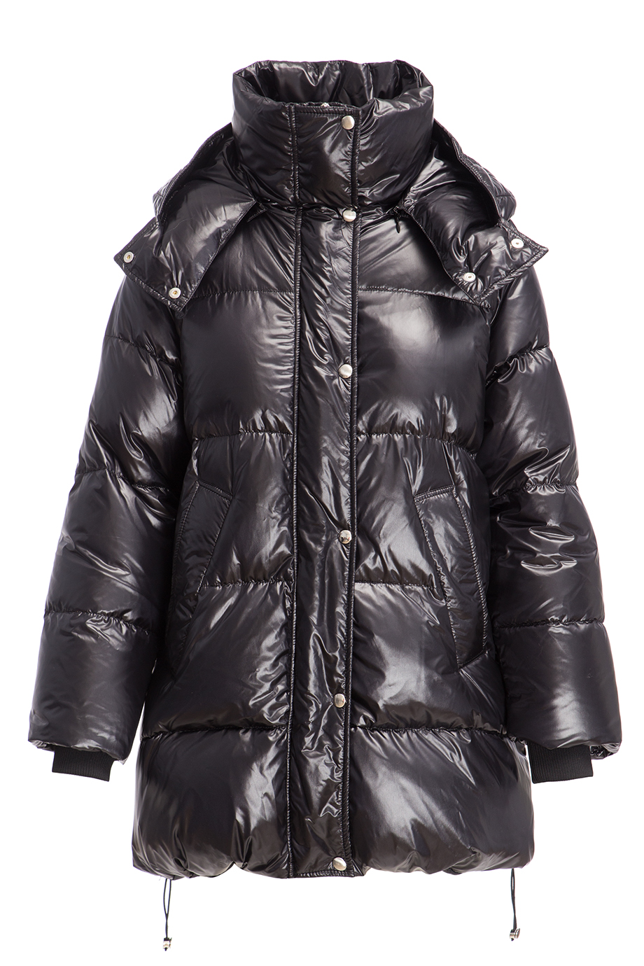Детали: прямой крой, высокий ворот со съемным капюшоном, длинный втачной рукав с внутренними манжетами из джерси, прорезные карманы с рантом по бокам, кулиска по нижнему краю. Застёгивается молнией и клапаном на кнопках.