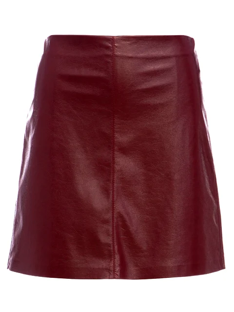 Детали: прямой крой, высокая посадка, скрытый пояс, блестящая кожаная текстура материала, металлическая молния на спинке.