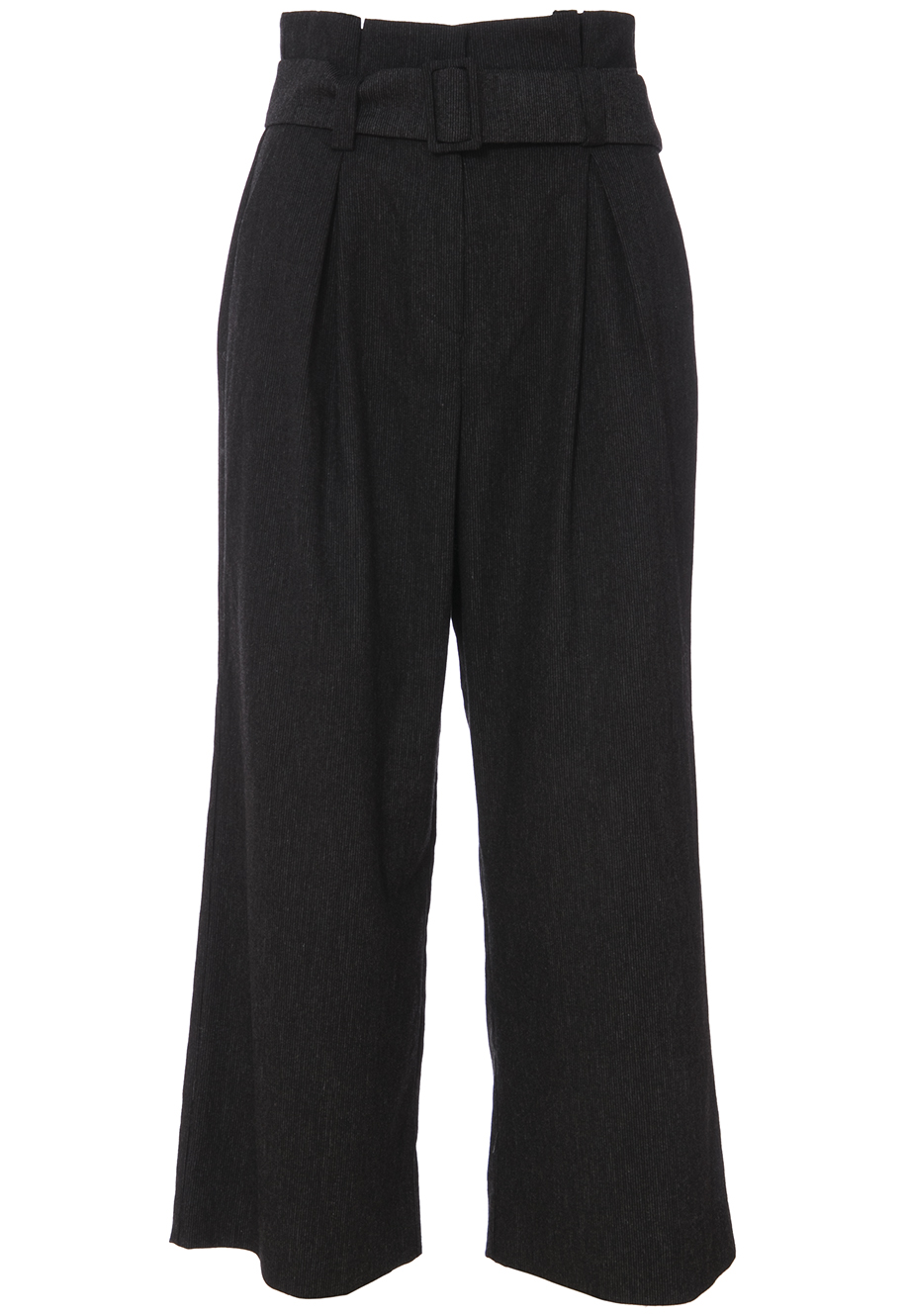 Детали: прямой крой, высокая посадка, симметричные защипы, французские боковые карманы, сзади два прорезных с рантом. Шлевки для ремня, потайной крючок, ширинка, дополнительный пояс с пряжкой в тон.