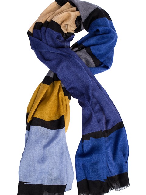 Детали: прямоугольная форма, фактурное плетение, абстрактные цветные полосы, бахрома по краям.