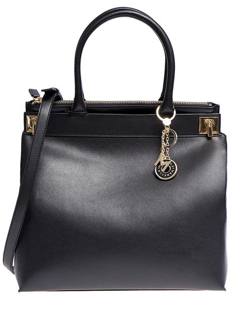 Детали: прямоугольная форма, две ручки, длинный плечевой ремень, декоративные механическое застёжки и брелок. Двойное отделение на молнии, карманы.