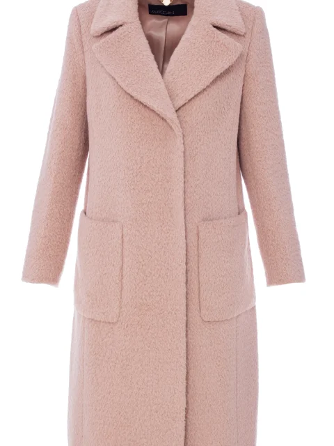 Детали: прямой крой, большой отложной с лацканами, длина ниже колена, два накладных кармана по бокам, застегивается на две потайные пуговицы. Подклада из ацетата.