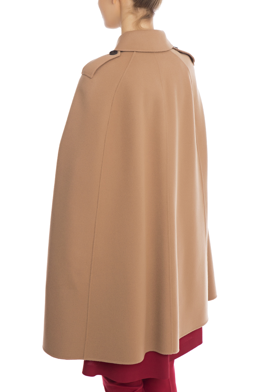 Детали: традиционный крой, А-силуэт, прорези для рук, отложной воротник, погоны с пуговицами на плечевых швах, большие накладные карманы декорированы лисьим мехом. Застегивается 3 пуговицами.