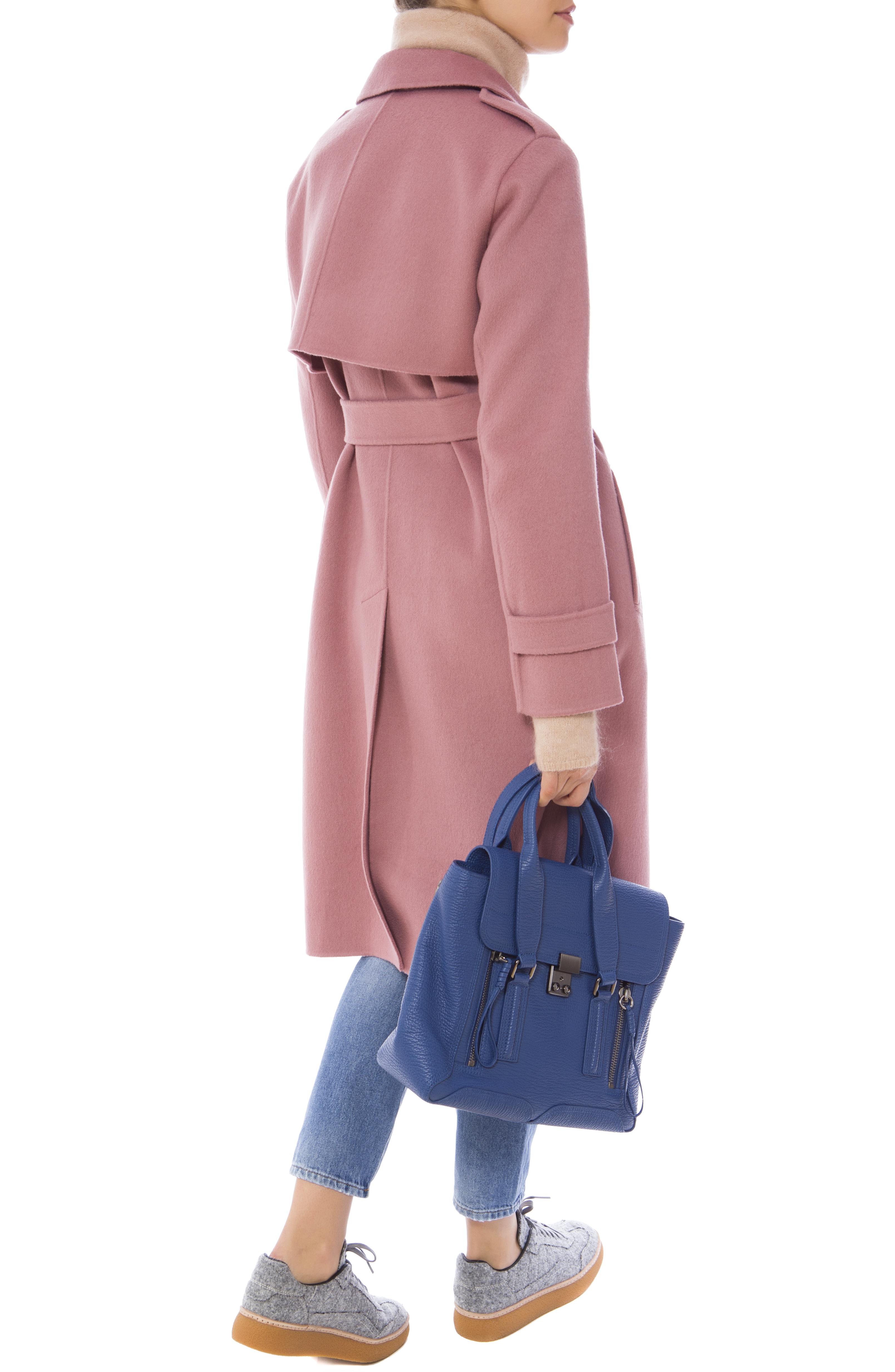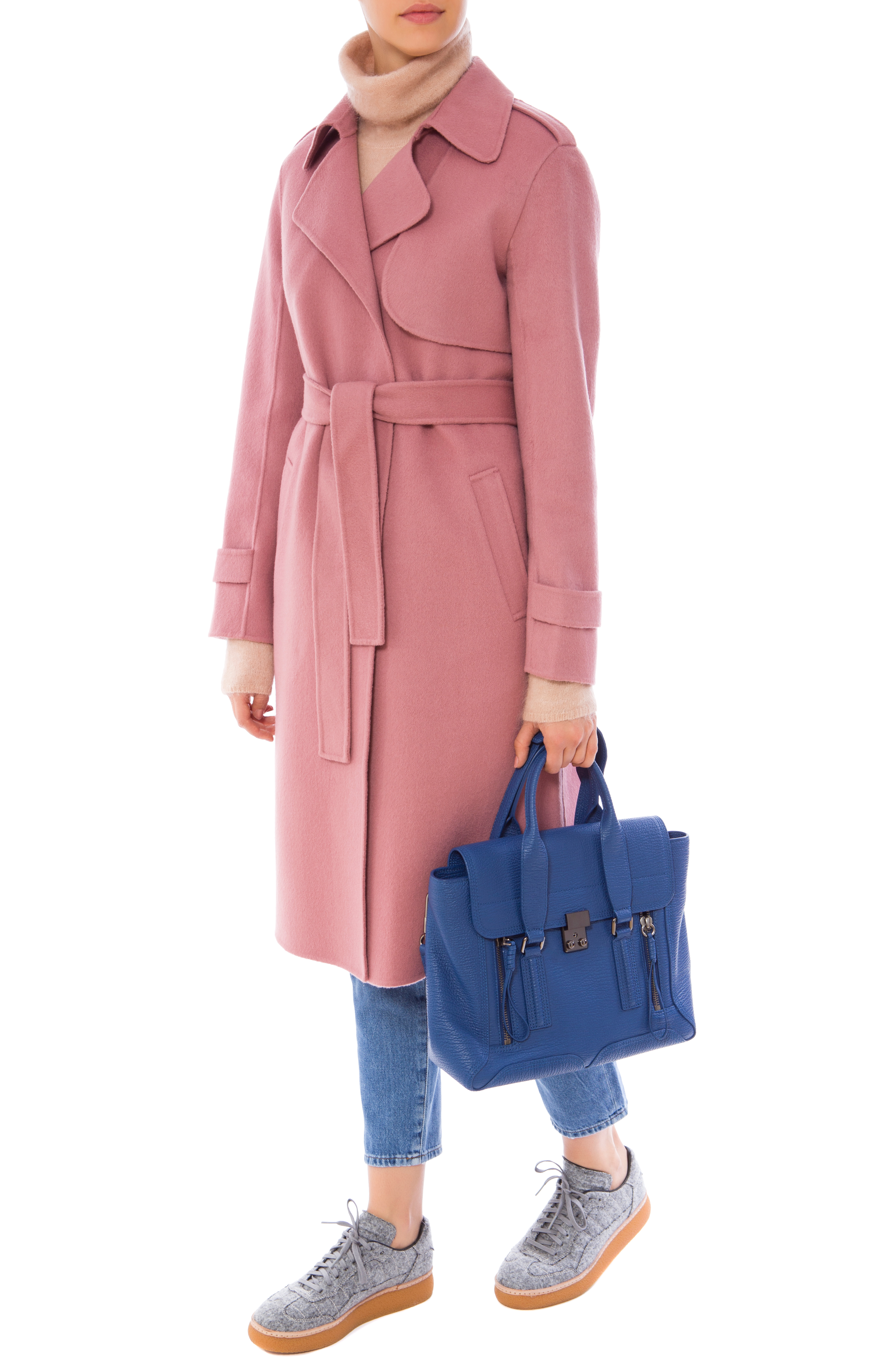 Детали: прямой крой, линия талии подчёркнута поясом, классический отложной воротник с лацканами, дополнительный клапан на левом плече, погоны, паты на рукавах, два прорезных кармана с рантом по бокам. Без подклады.