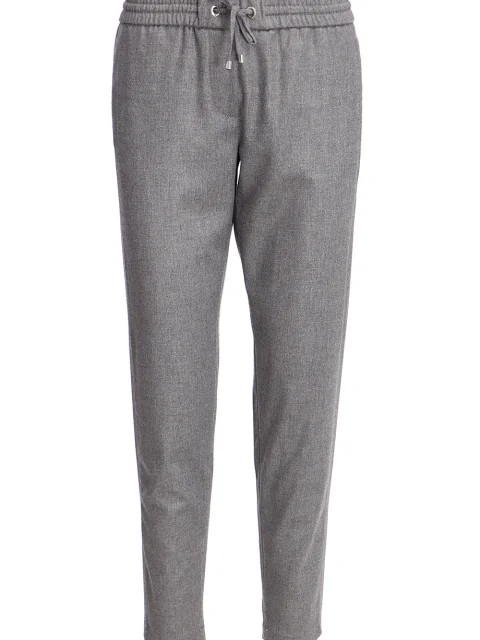 Детали: прямой крой, слегка зауженный книзу, средняя посадка, пояс на кулиске с резинкой и шнурком, прорезные карманы по боковым швам, сзади один с рантом, лампасы.