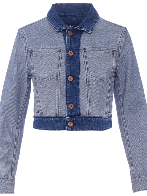 Детали: укороченный силуэт, длина до линии талии, материал изнаночной строной, отложной воротник, планка с пуговицами медного цвета.