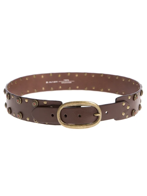 Детали: кожаный ремень, декорирован клепками с инкрустацией камней, пряжка и фурнитура с эффектом состаренности.