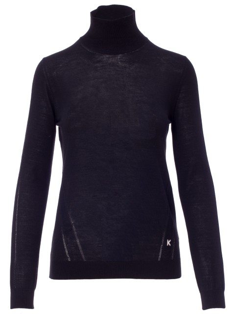 Детали: облегающая модель, высокий воротник, длинный рукав, манжеты и талия на резинке; акцентом в изделии являются декоративные полупрозрачные полосы на рукавах и впереди внизу.