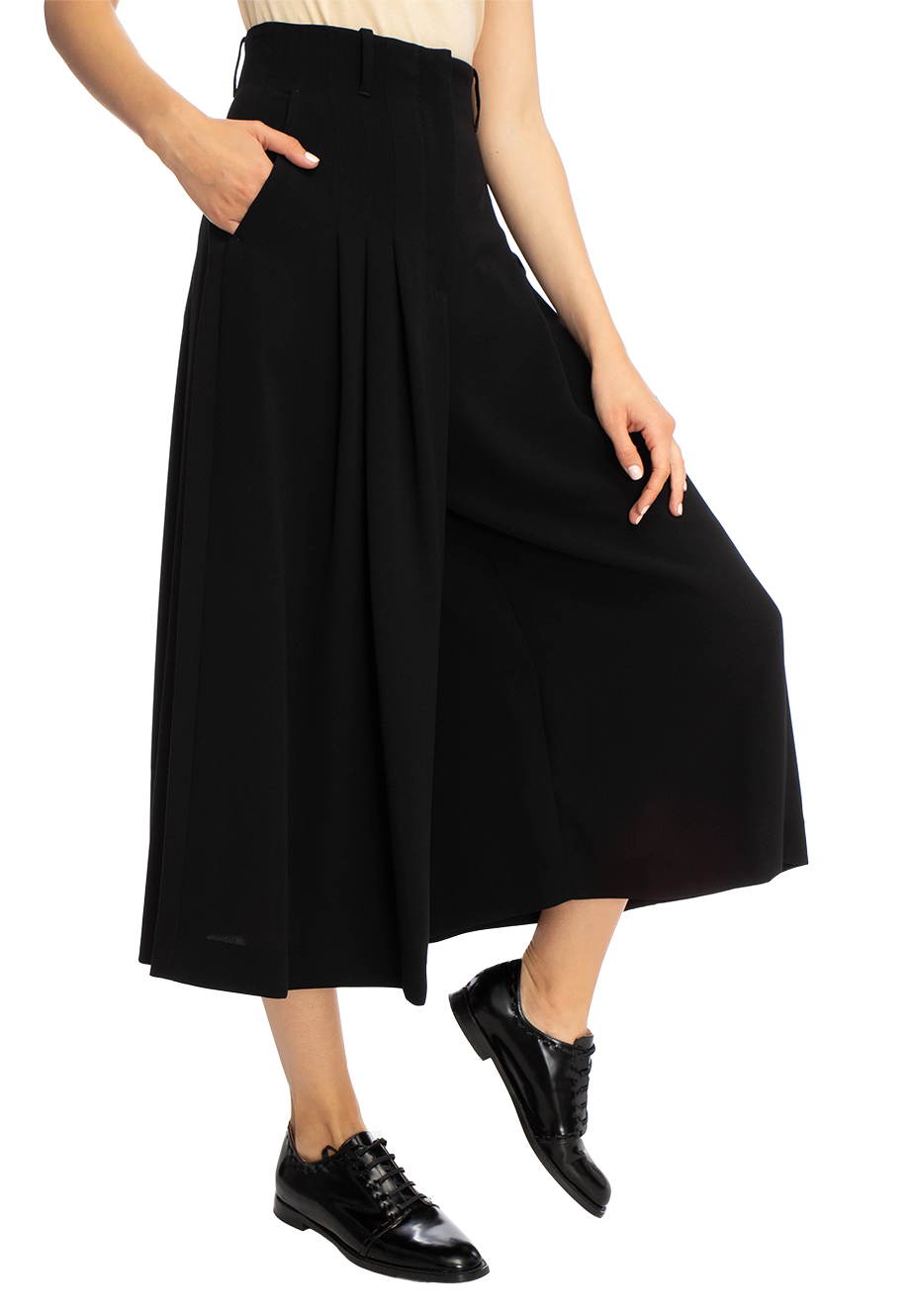 Детали: крой клёш от бедра, высокая посадка, тройной защип и одинарный на уровне бёдер, французские боковые карманы.