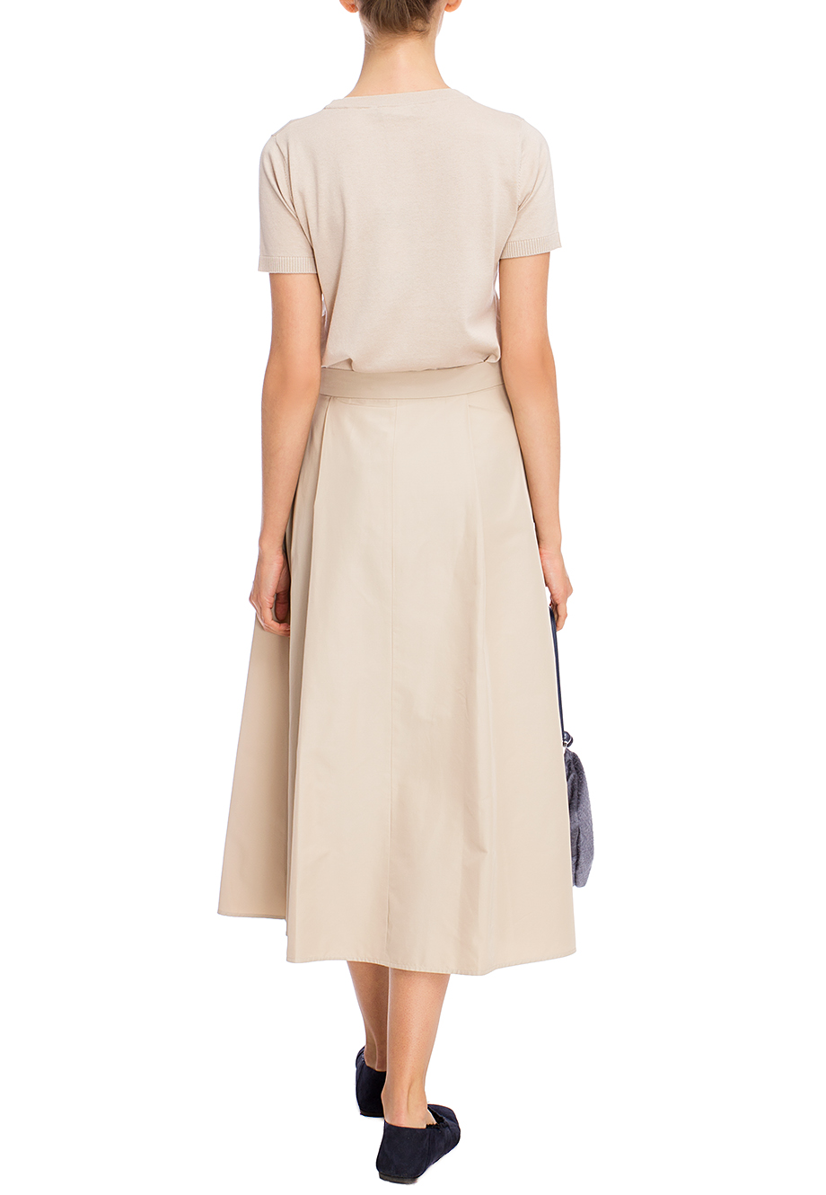 Детали: прямой крой, круглый вырез горловины, короткий втачной рукав, вокруг горловины вязаный цветочный рисунок.