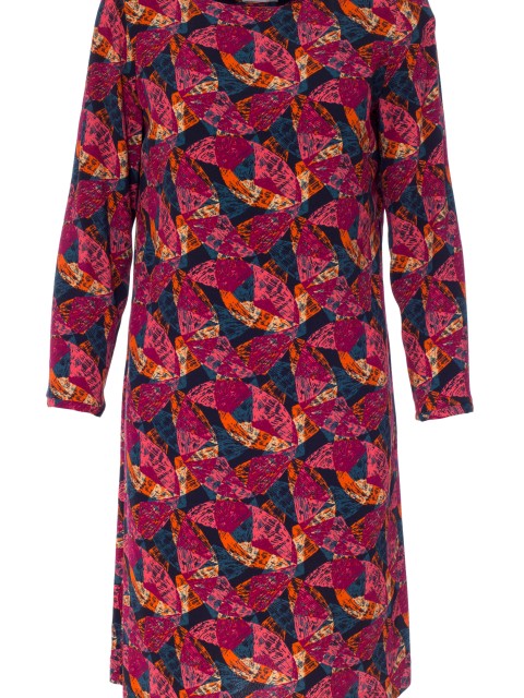Детали: трапецевидный крой, длина выше колена, вырез горловины лодочкой, рукава длиной 7/8.