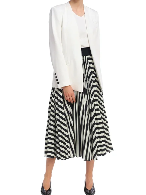 А-силуэт, высокая посадка, эластичный пояс, длина миди, принт в полоску.