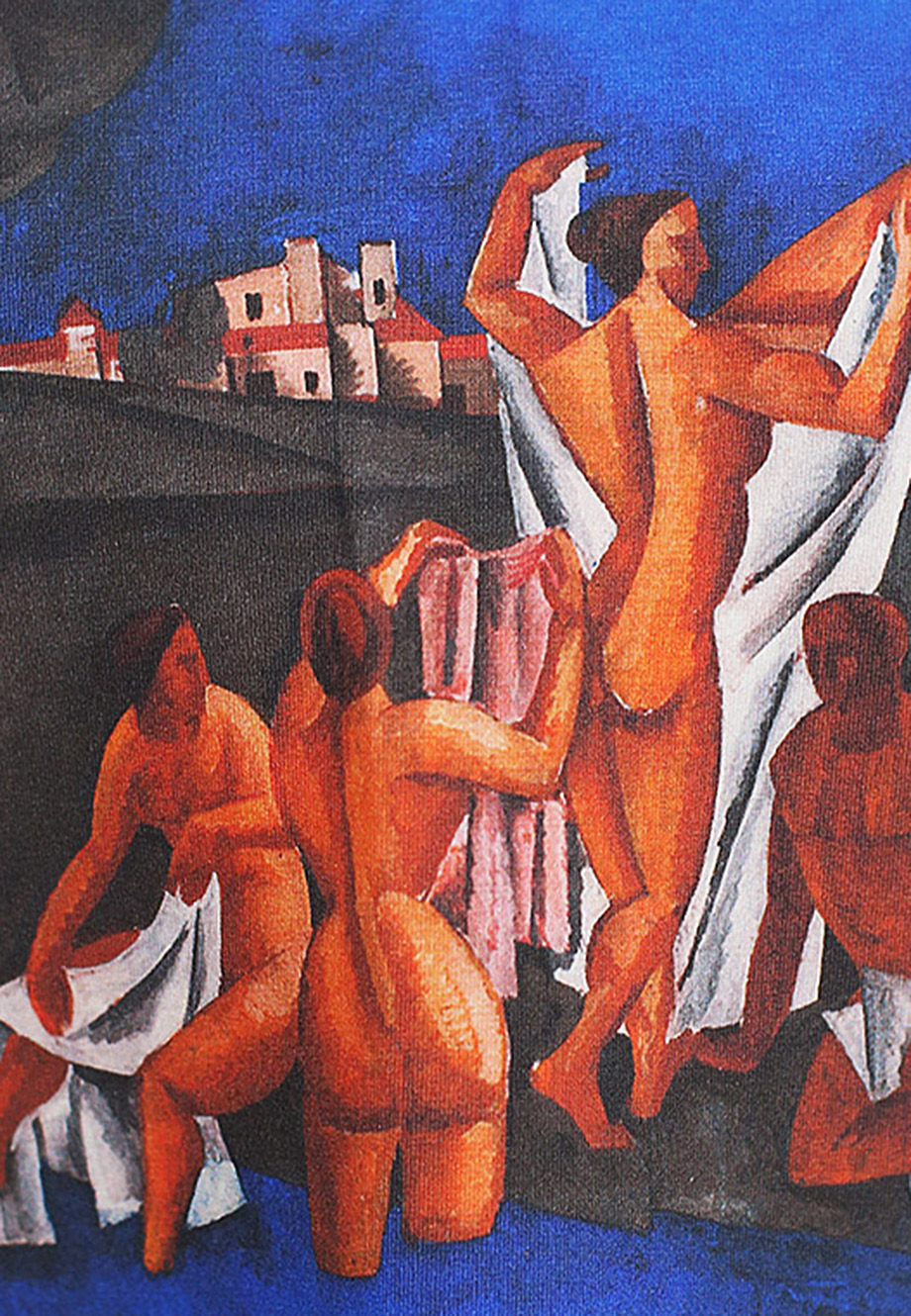 Амшей Нюренберг учился в Париже. В известной коммуне Улей он делил студию с Марком Шагалом. Вернувшись в Одессу, он привез с собой «парижский» дух и основал авангардное объединение «Независимые». Но для одесситов, привыкших к реализму, модернистское искусство было малопонятным. И публика, и пресса иронически называли членов объединения «одесскими парижанами». А в советское время модернизм и авангард вообще оказались вне закона. Из-за формализма работы модернистов исключали из экспозиций музеев, некоторые даже уничтожали. Единицы сохранились чудом, как, например, «Купальщики». Эту работу первоначально направили в Музей западно-восточного искусства. До сих пор неизвестно, то ли специально для ее сохранения, то ли действительно случайно «перепутали». Как одесского художника, Нюренберга вернули в Одесский художественный музей только в 1999 году. Поэтому не обижайся, Амшей, что перепутали, ведь это нам на пользу.