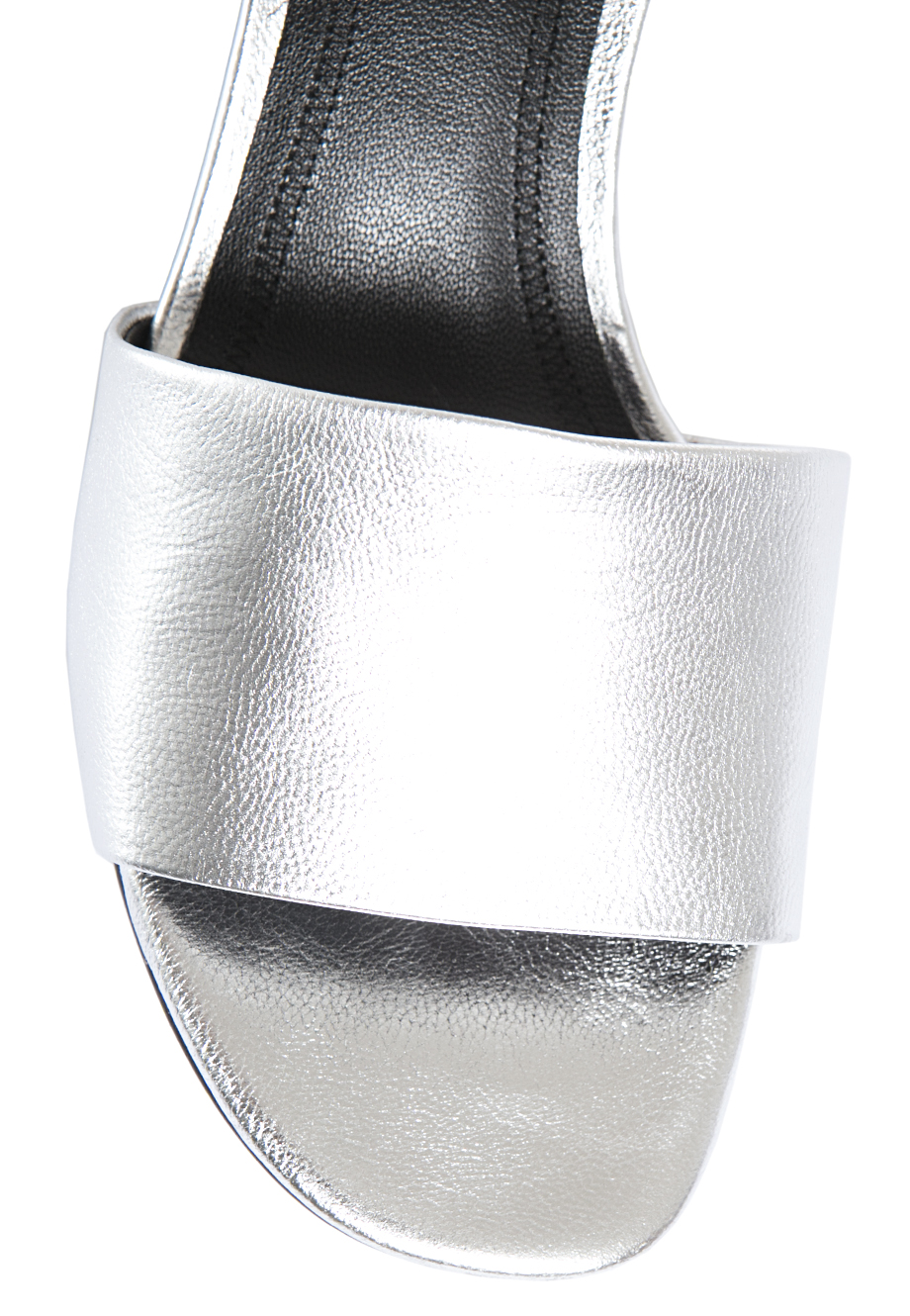 Детали: широкая кожаная перепонка, устойчивый каблук высотой 4 см декорирован срезом и металической пластиной. Стелька из кожи.