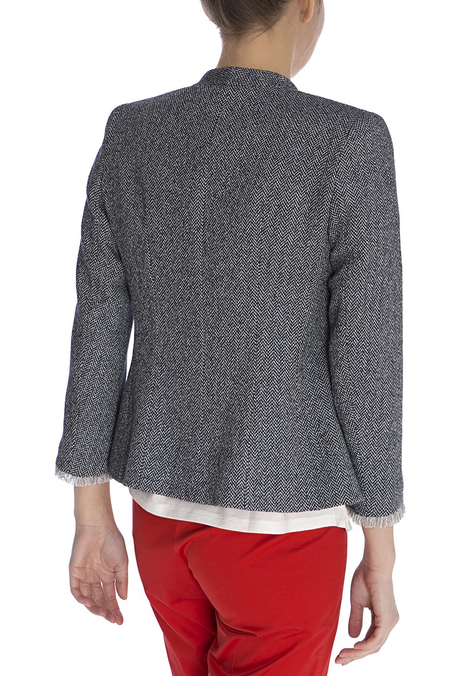 Детали: традиционный крой без ворота. Два накладных кармана по бокам с бахромой и два нагрудных. Рукава длиной 7/8 с бахромой по краю. .