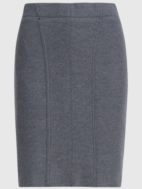 Облегающий крой, высокая посадка, крой клиньями, перестрочки, контрастный шов сзади, длина выше колена.