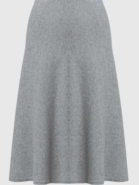 А-силуэт, высокая посадка, скрытый эластичный пояс, длина ниже колена.