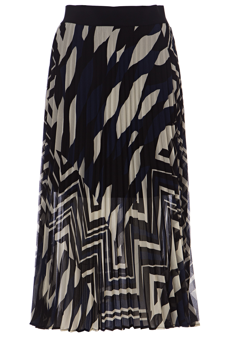 Детали: А-силуэт, высокая посадка, длина ниже колена, трехцветный комбинированный принт, эластичный принт. Однотонная подклада из полиэстера.