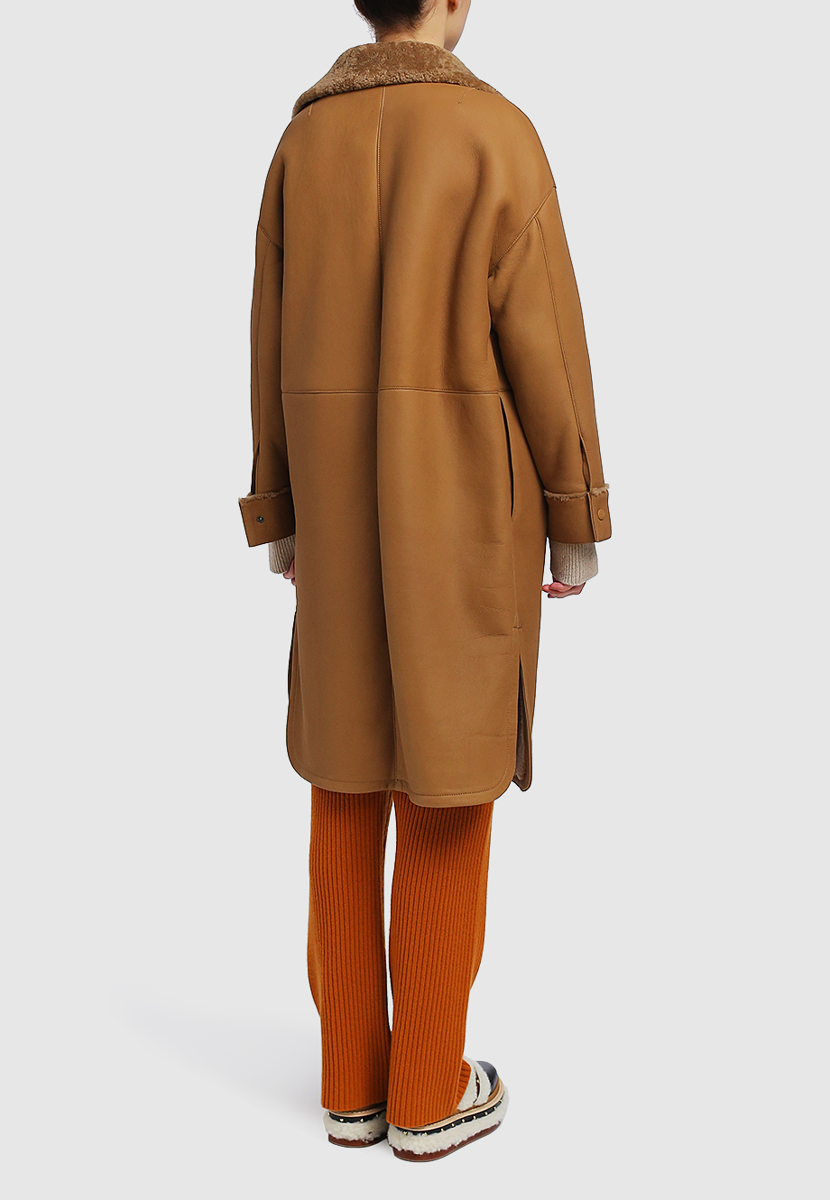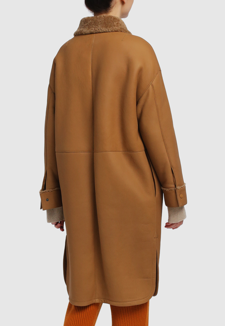 Прямой крой, отложной воротник, длинный втачной рукав, клапаны-обманки на груди и по бокам, прорезные карманы по боковым швами закруглённый нижний край, боковые разрезы, планка с рядом скрытых кнопок.