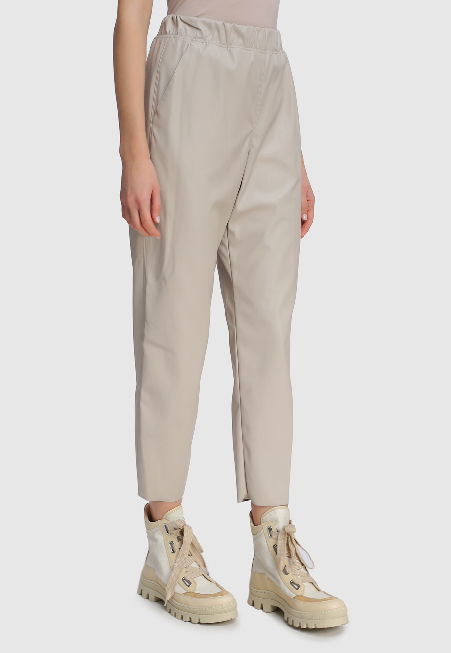 Прямой крой, высокая посадка, эластичный пояс с кулиской, французские боковые карманы, длина ⅞.