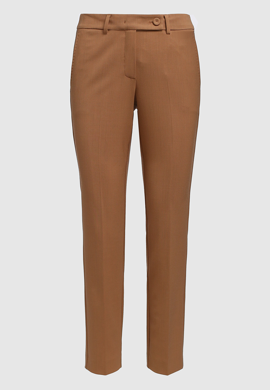 Прямой укороченный крой, средняя посадка, французские боковые карманы, сзади два прорезных с рантом, стрелки вдоль штанин, отделка ручным стежком по кромке. Длина ⅞.