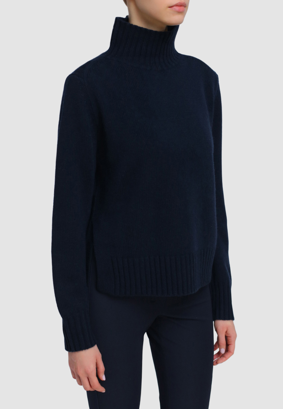 Прямой крой, высокий ворот, длинный втачной рукав, манжеты по нижнему краю и на рукавах, боковые разрезы.