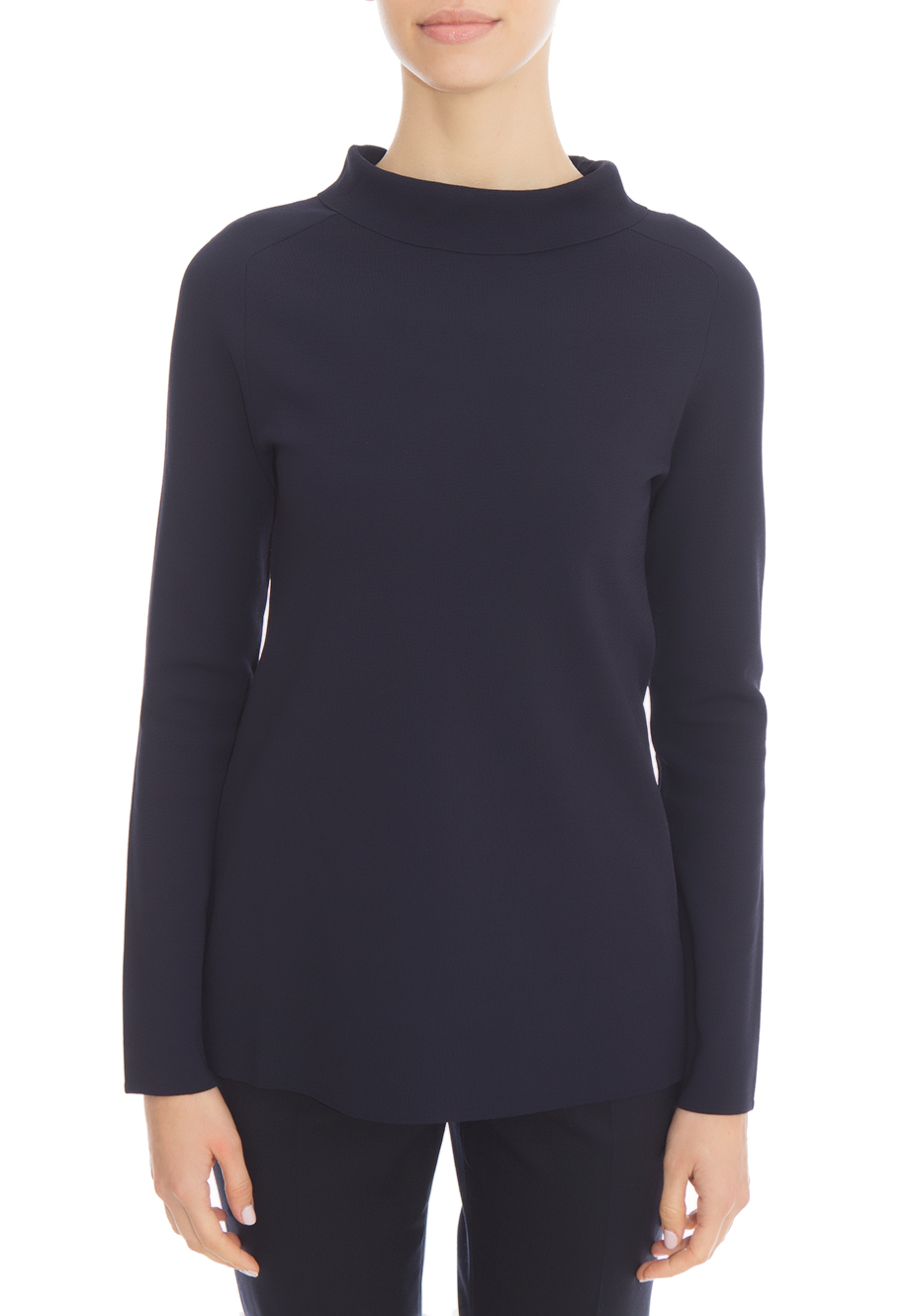 Детали: прямой крой, широкий ворот с отворотом, длинный втачной рукав, гладкая вязка трикотажа.