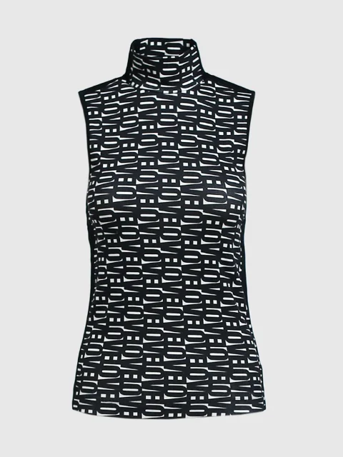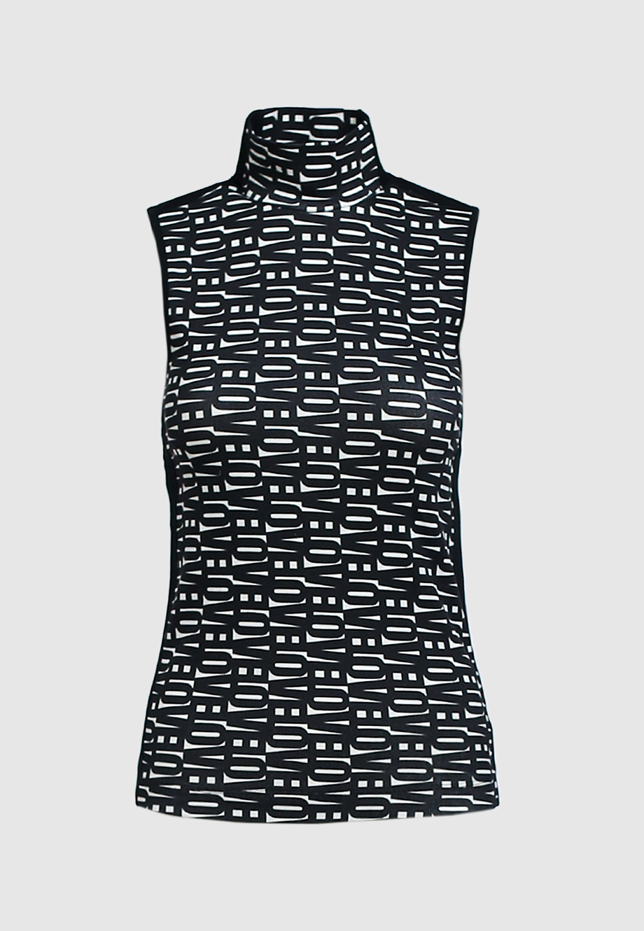 Облегающий крой, высокий ворот, без рукавов, монохромный принт.