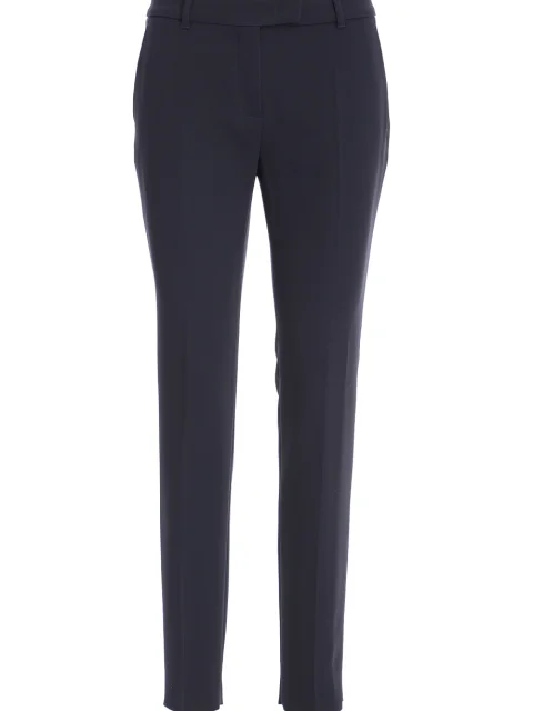 Детали: прямой крой, слегка зауженный книзу, высокая посадка, французские боковые карманы, сзади один прорезной с рантом, пояс со шлёвками для ремня, потайной крючок, ширинка, стрелки вдоль штанин.