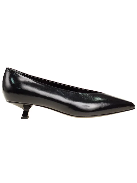 Детали: заострённый носок, глянцевая гладкая кожа, фигурный каблук высотой 3 см.