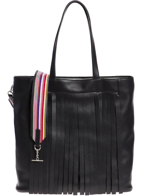 Детали: прямоугольная форма, две кожаные ручки, длинная бахрома, отстёгивающийся плечевой ремень из цветной тесьмы в полоску. Внутренняя магнитная кнопка и дополнительный кошёлек на молнии.
