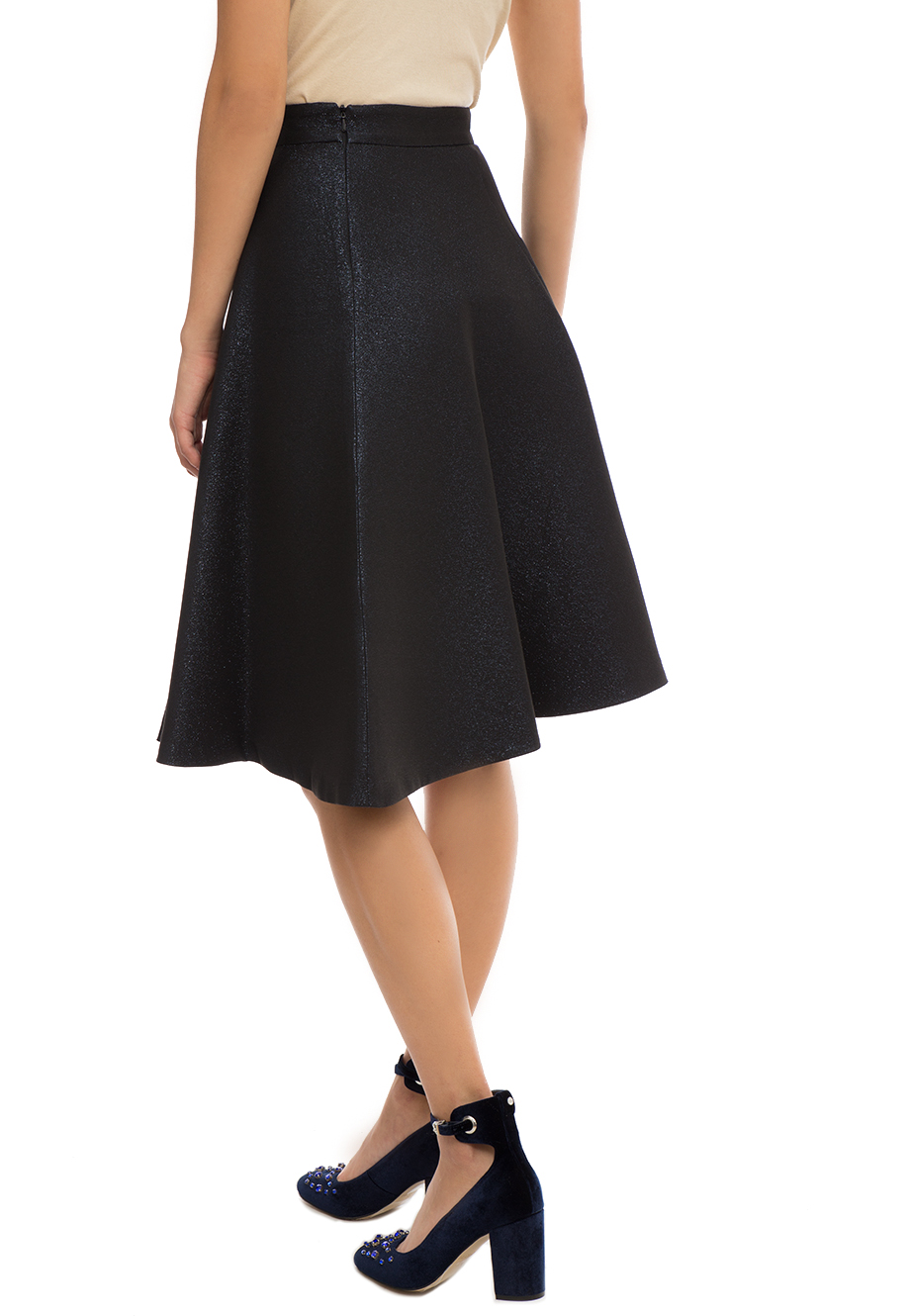 Детали: А-силуэт, высокая посадка, глубокие складки, длина до колена. Пояс с потайной молнией.