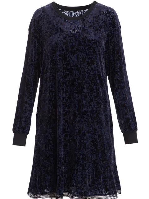 Детали: А-силуэт, круглый вырез горловины, длинный втачной рукав с эластичной манжетой, набивной велюровый рисунок, длина до середины бедра, тонкая кромка сеткой.