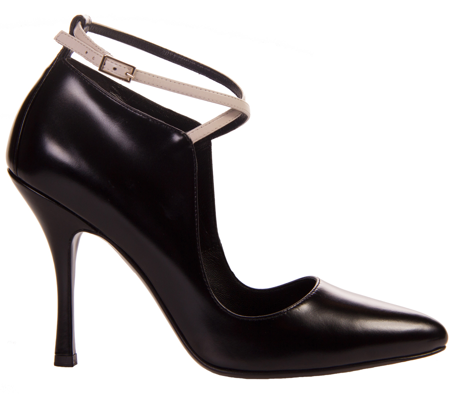 Туфли из натуральной кожи с перекрещивающимися ремнями на лодыжке. Острый носок. Высота каблука – 10 см. В комплекте прилагается чехол для хранения.