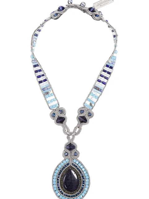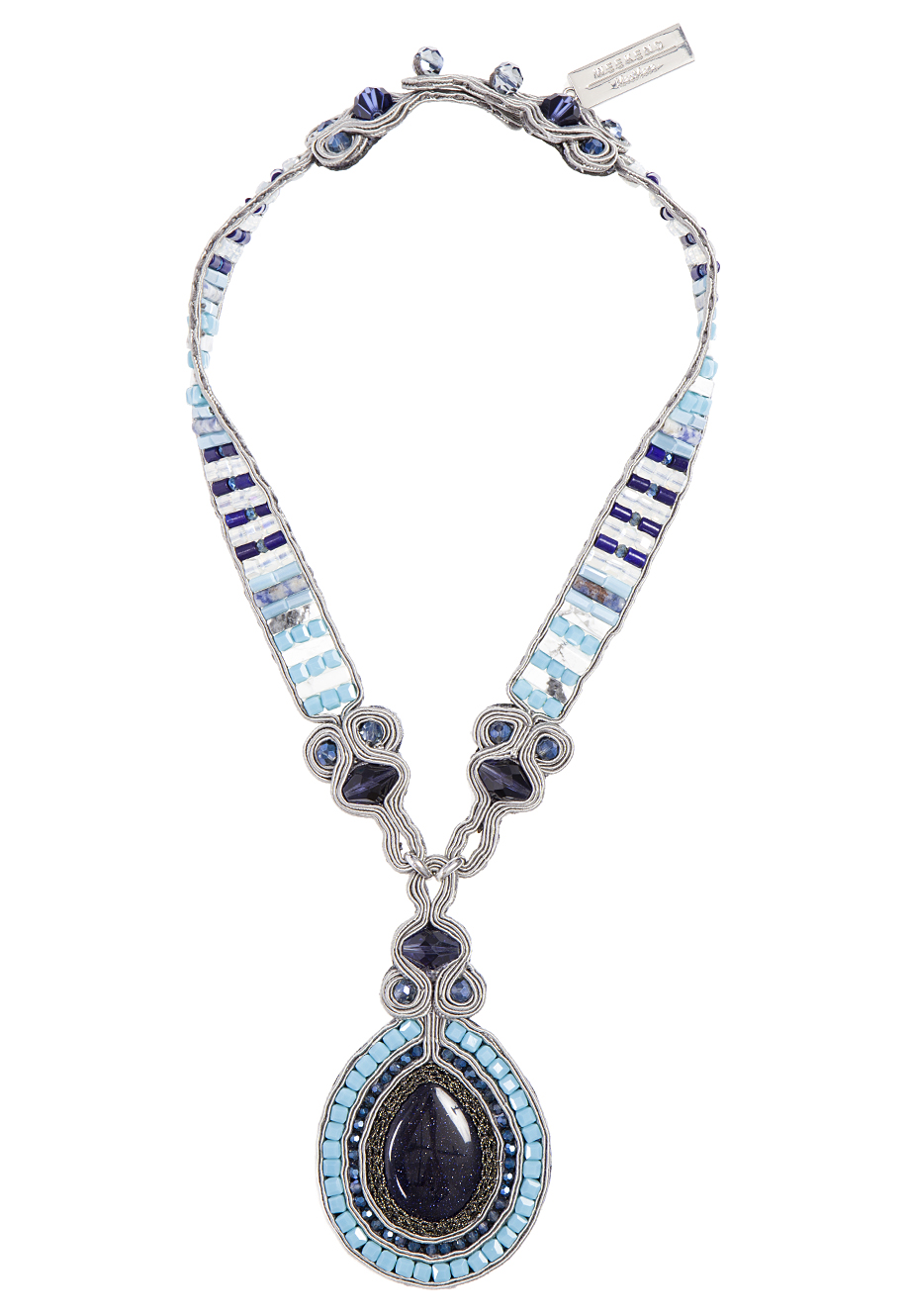 Детали: лента с крупным бисером и подвеской из камней. Застегивается бусинами через петли.