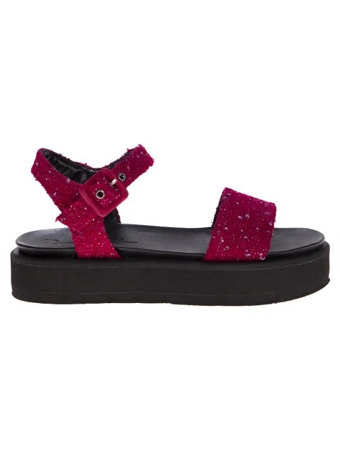 Детали: закруглённый носок, широкая перепонка с отделкой из твида, ремешок вокруг