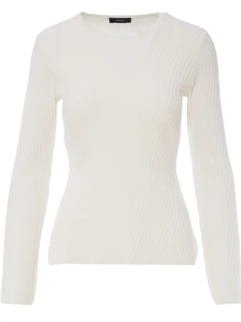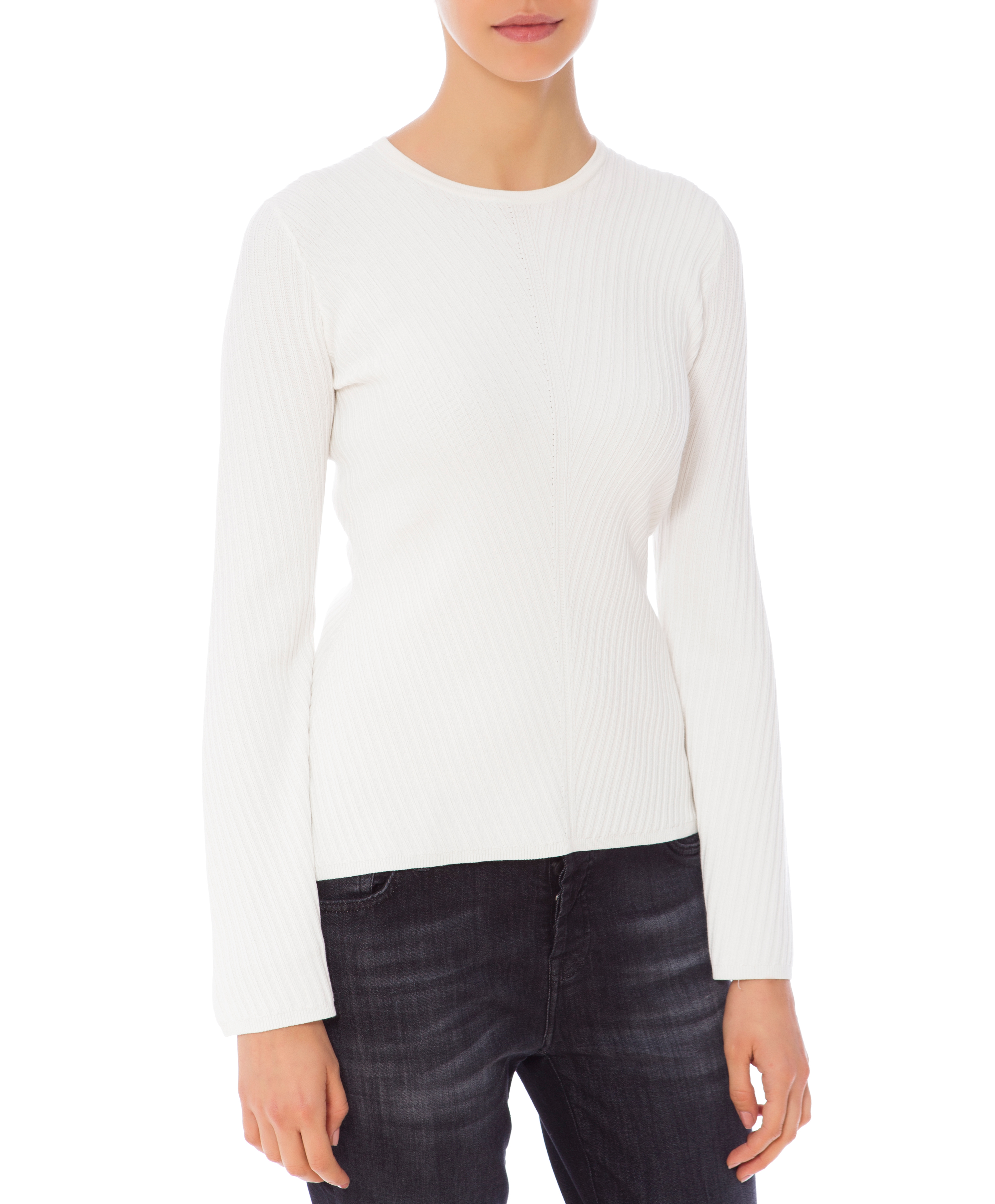 Детали: облегающий крой, круглый вырез горловины, длинный втачной рукав с диагональным узором в рубчик. От плеч к середине также проходит диагональный узор.