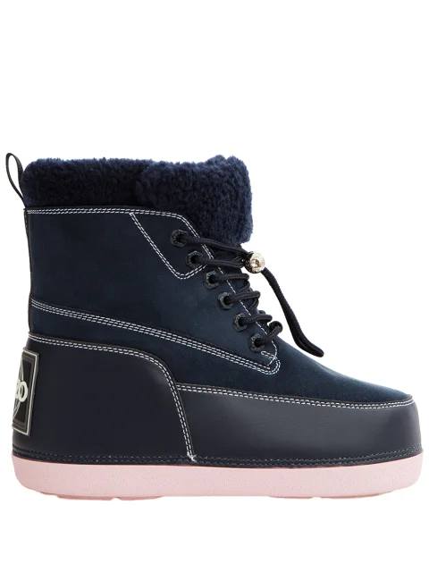 Детали: закруглённый носок, сапожок из замши с широким кожаным кантом, шнуровка с затяжкой, контрастные белые строчки, внутренняя отделка мехом.